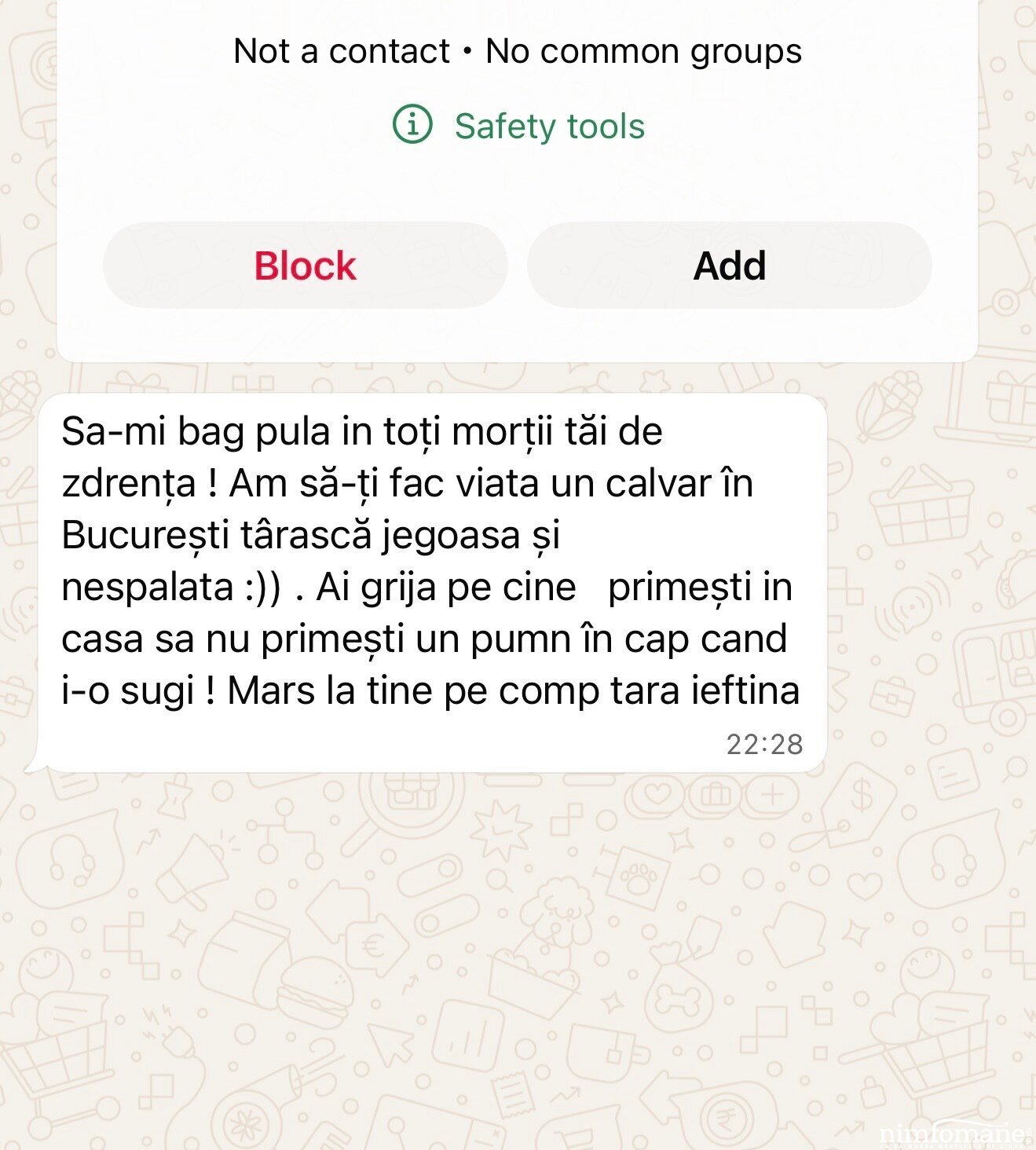 P.S. Înainte ca cineva să creadă că exagerez sau că aceste decizii sunt „dramatice”, voi atașa și un exemplu real de mesaj primit, combinație de amenințare, vulgaritate și tragicomedie ieftină. Acesta este exact motivul pentru care filtrarea nu mai este opțională, ci necesară.